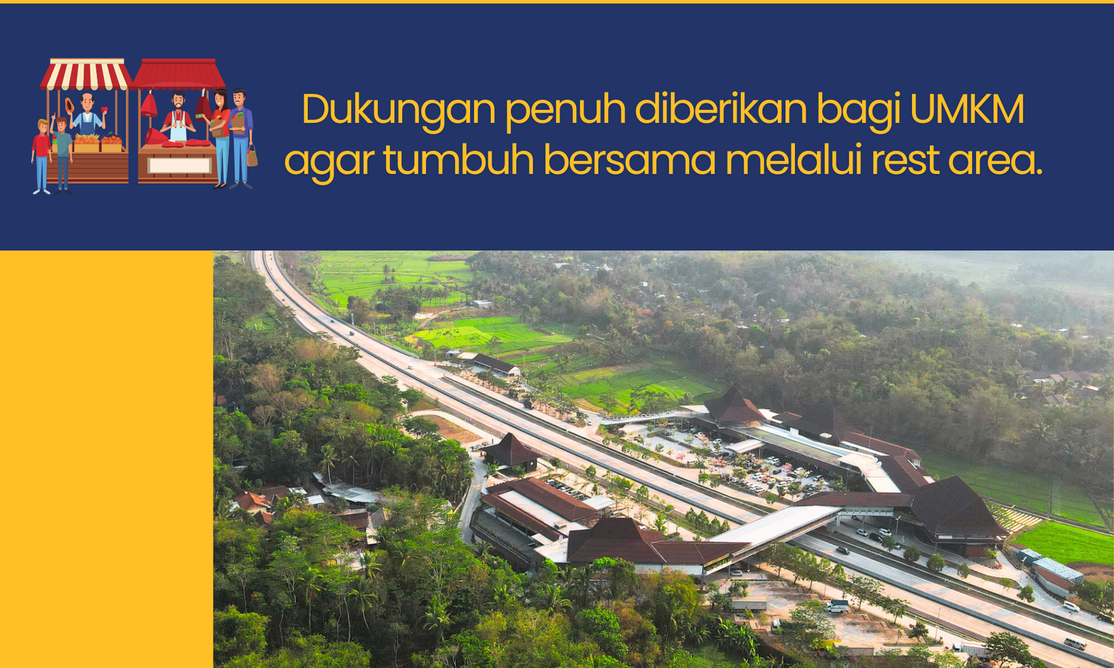 Rest area menjadi simpul ekonomi yang menghidupkan potensi lokal, baik kuliner, retail, maupun produk khas daerah.